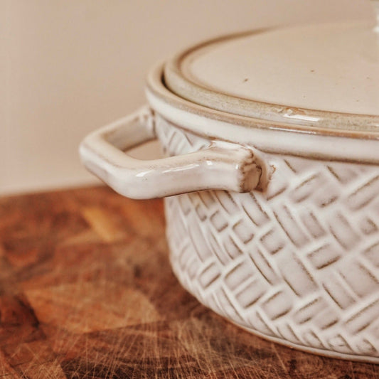 Basket Weave Stoneware Baker Dish With Lid
