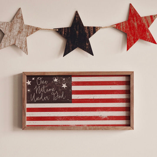 One Nation Under God Flag Wood Sign