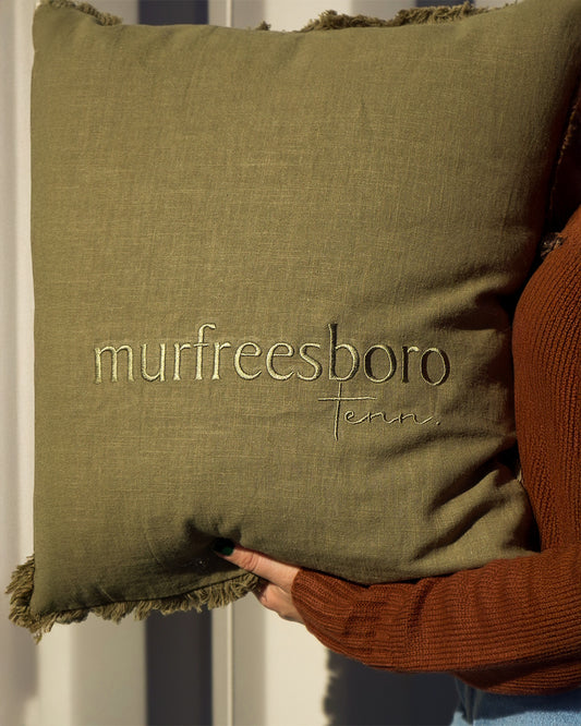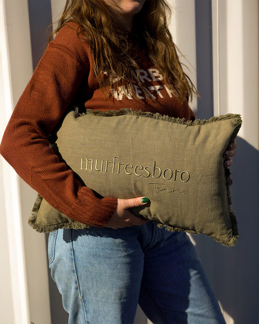 Tone on Tone Fringe Murfreesboro Pillow Small [Olive Green]