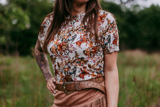 Let's Rodeo Ladies Muscle Tee [Faded Brown]