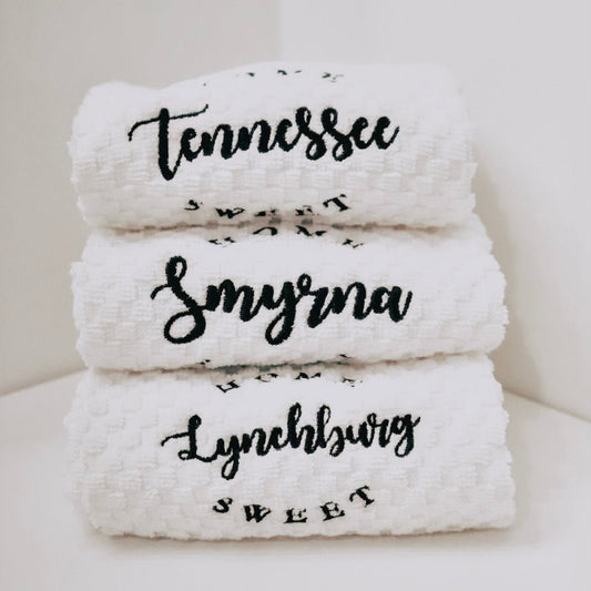 Linens like kitchen towels, aprons, and more! Every home needs a sweet trendy towel to show off! What better towel than one that supports the love for local and Sweet Home Tennessee! Shop our wide variety of our kitchen towels with many options and cities to choose from you are sure to find the perfect one for you!