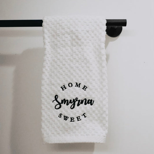 Home Sweet Smyrna Waffle Tea Towel [White]