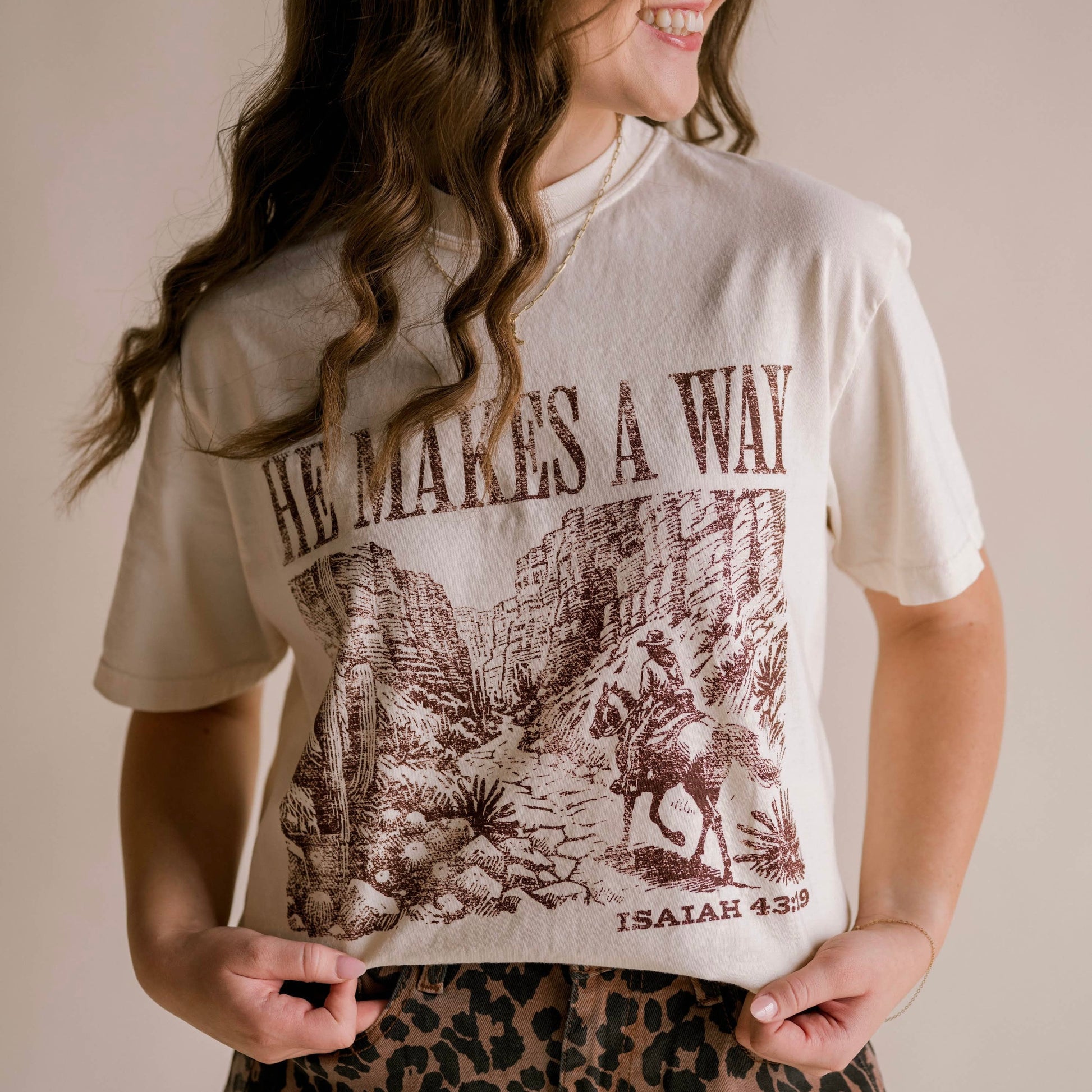The He Makes a Way Tee is a gentle reminder that God goes before you — opening doors, creating paths, and working all things for good, even when you can’t yet see it.