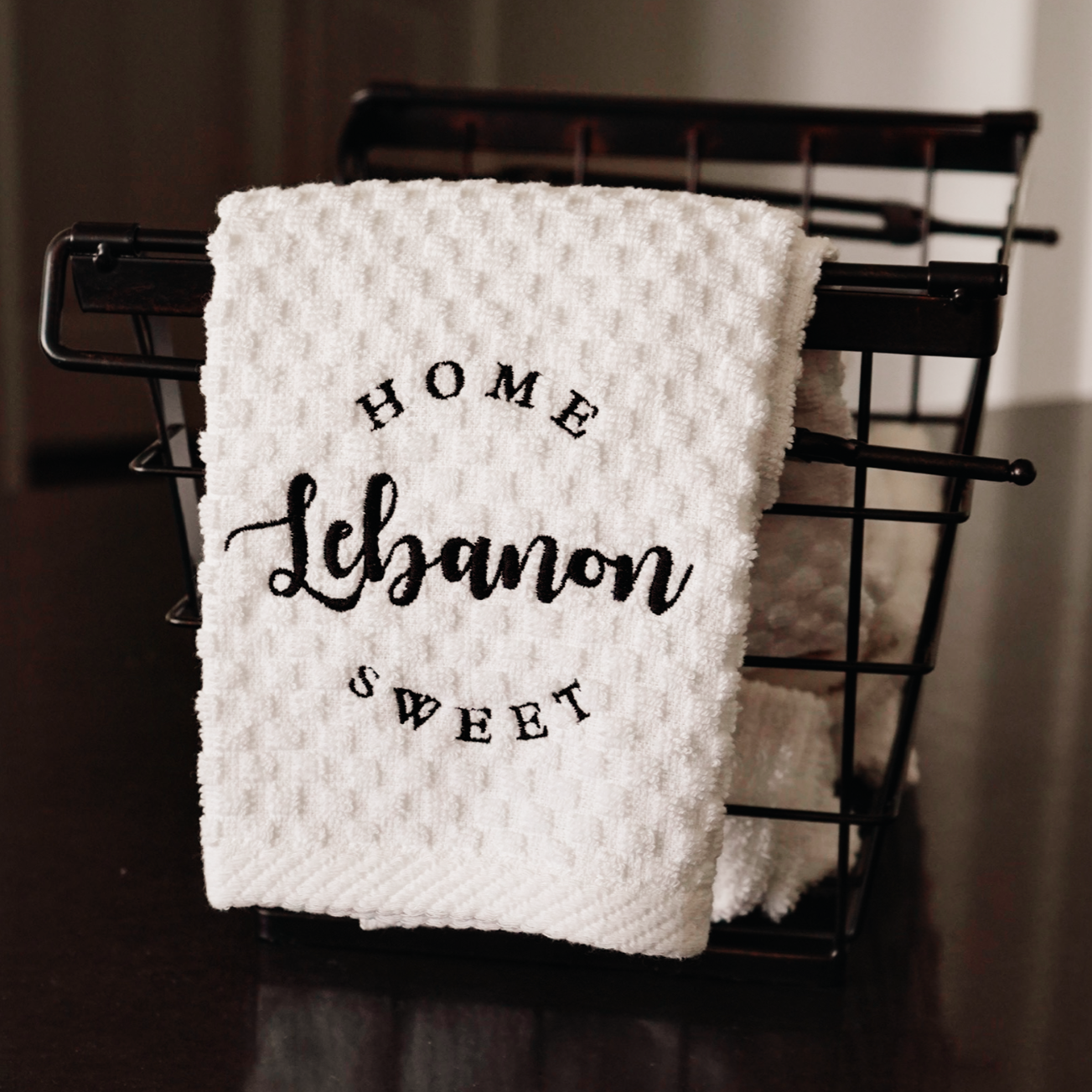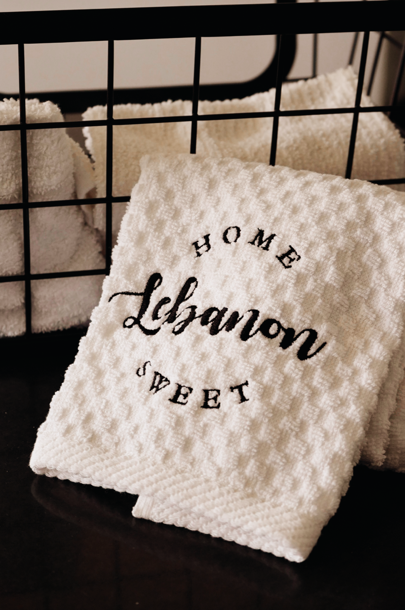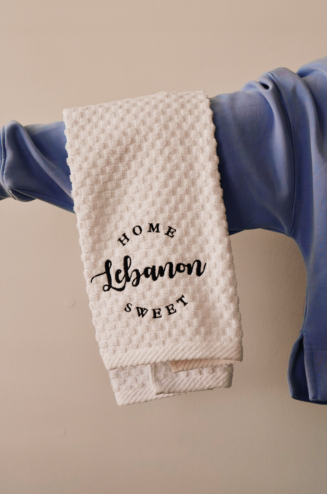 Home Sweet Lebanon Waffle Tea Towel [White]