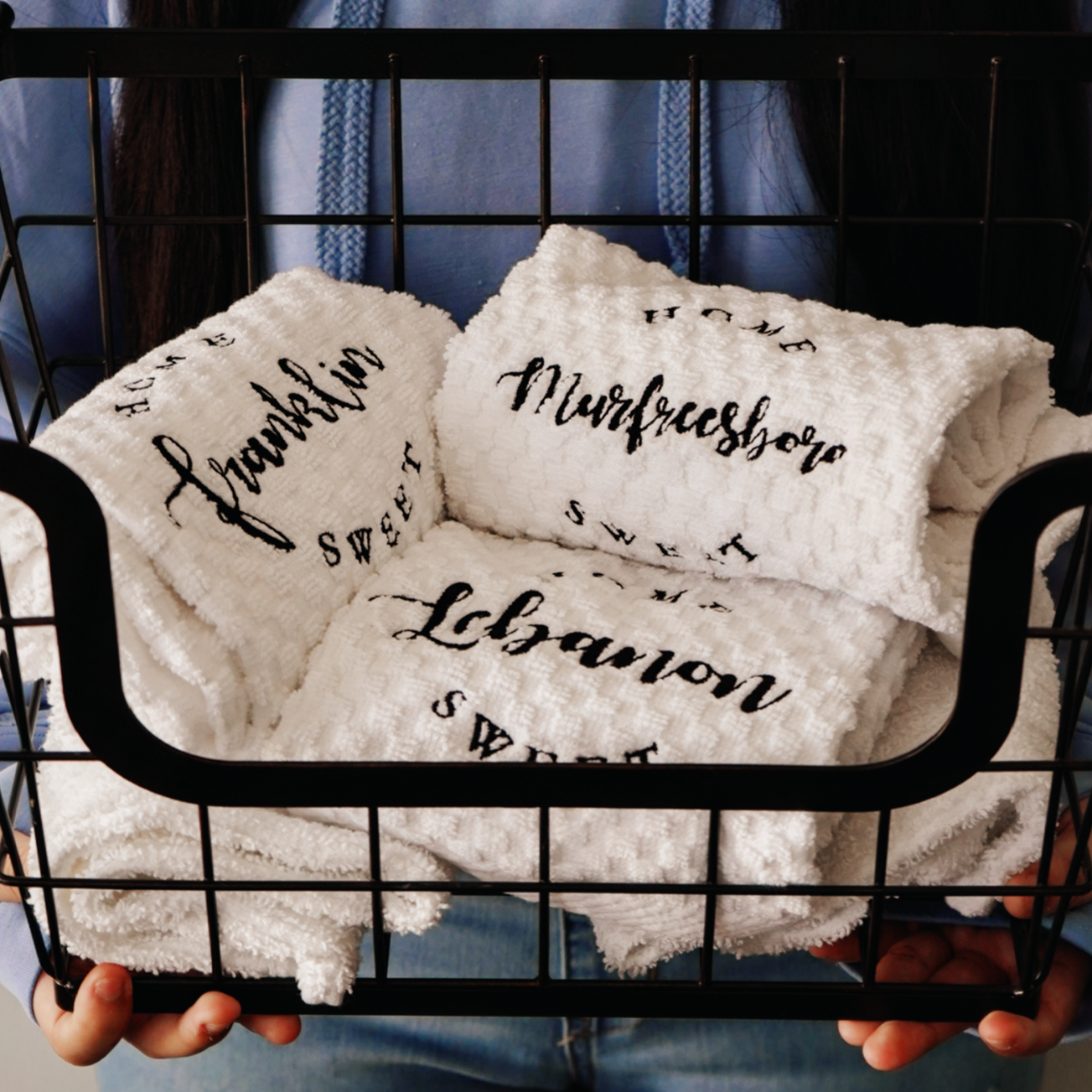 Home sweet home- and what makes it more sweet than a kitchen towel to show off your city pride! Made from soft, absorbent white cotton with black embroidered “Home Sweet Home” lettering, it’s a stylish nod to city love. Perfect for gifting or adding a local touch to your kitchen. The classic white waffle texture and classic black design goes with any style of home decor!
