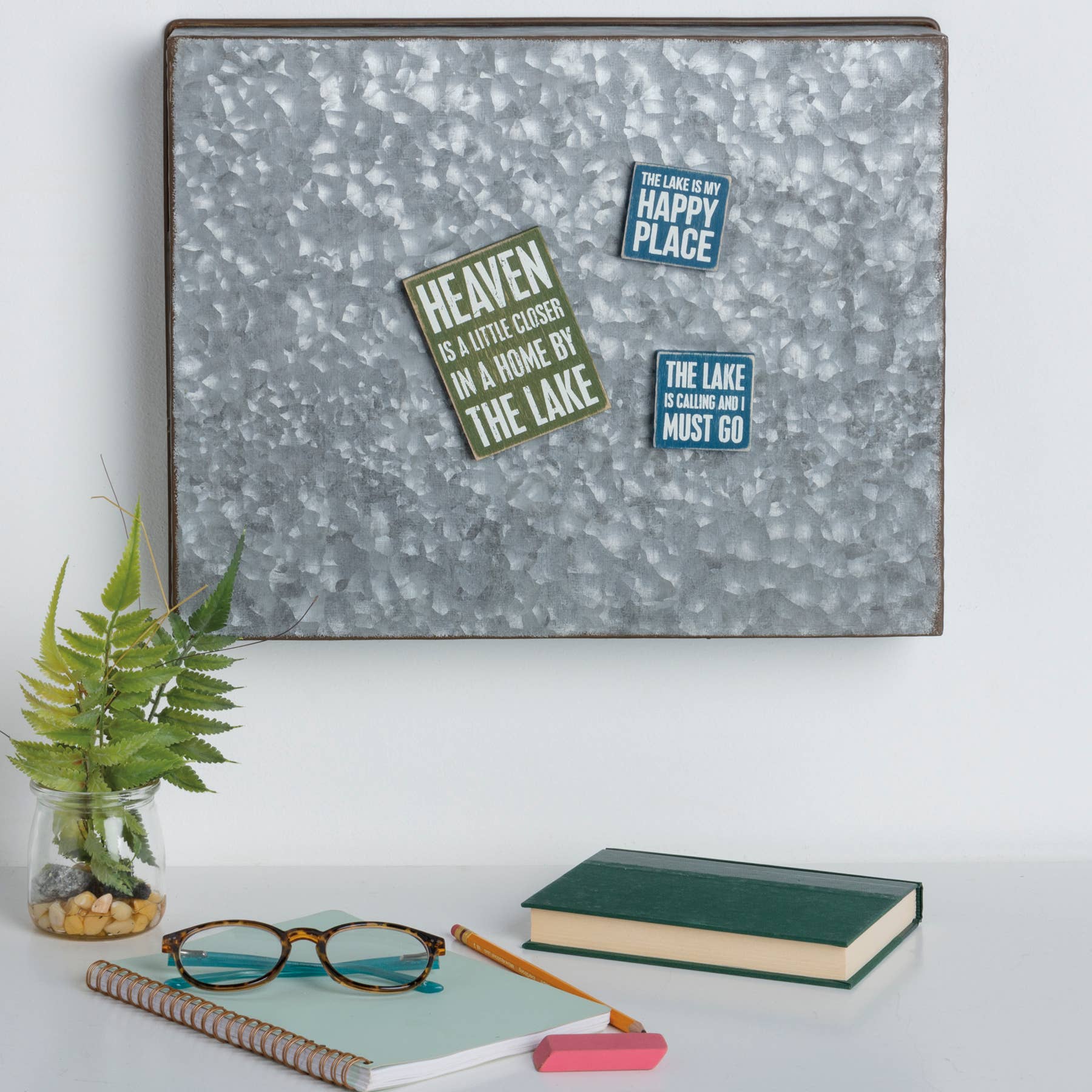 A set of three wooden magnets featuring distressed "Heaven Is A Little Closer In A Home By The Lake," "The Lake Is My Happy Place," and "The Lake Is Calling And I Must Go" sentiments in a nature-inspired palette.