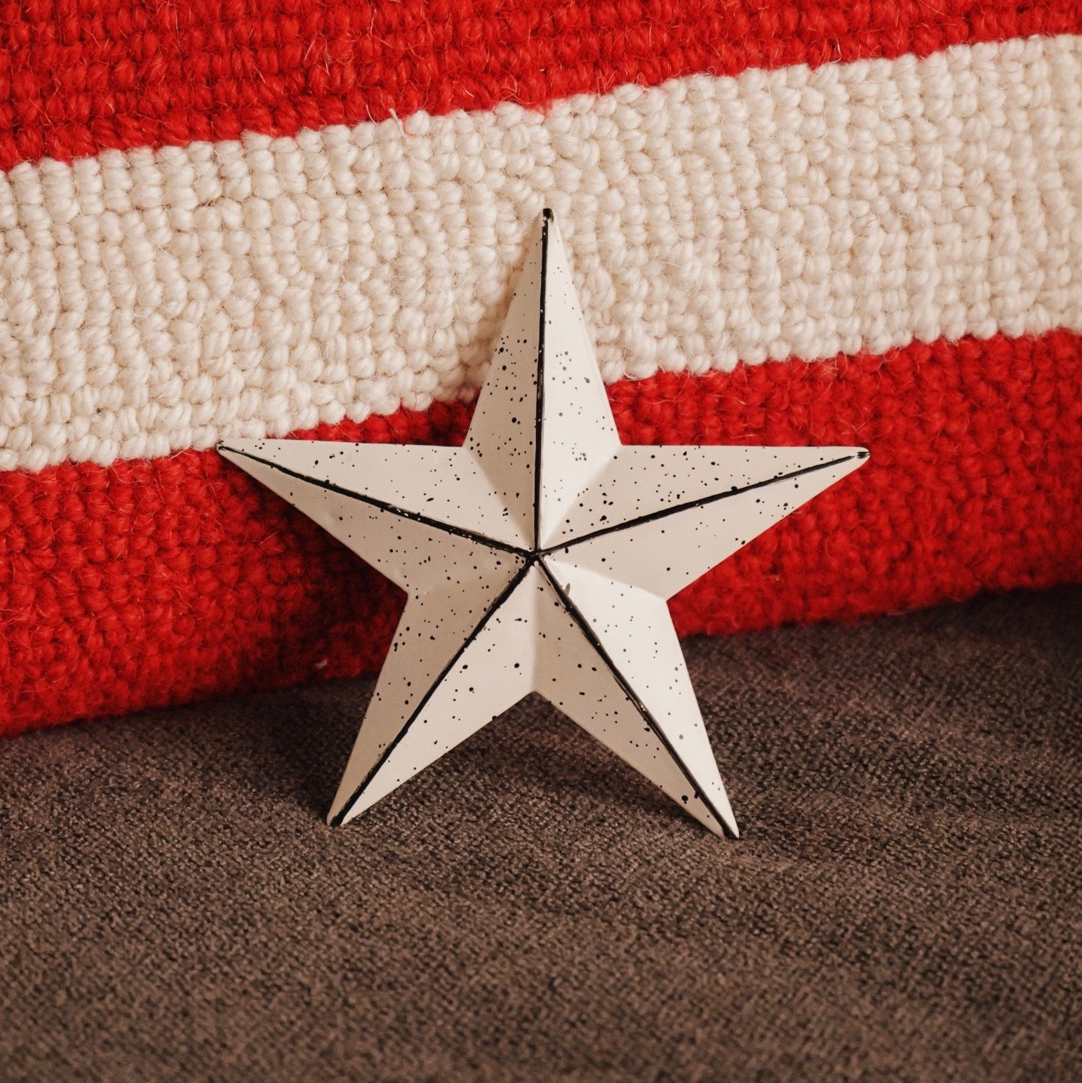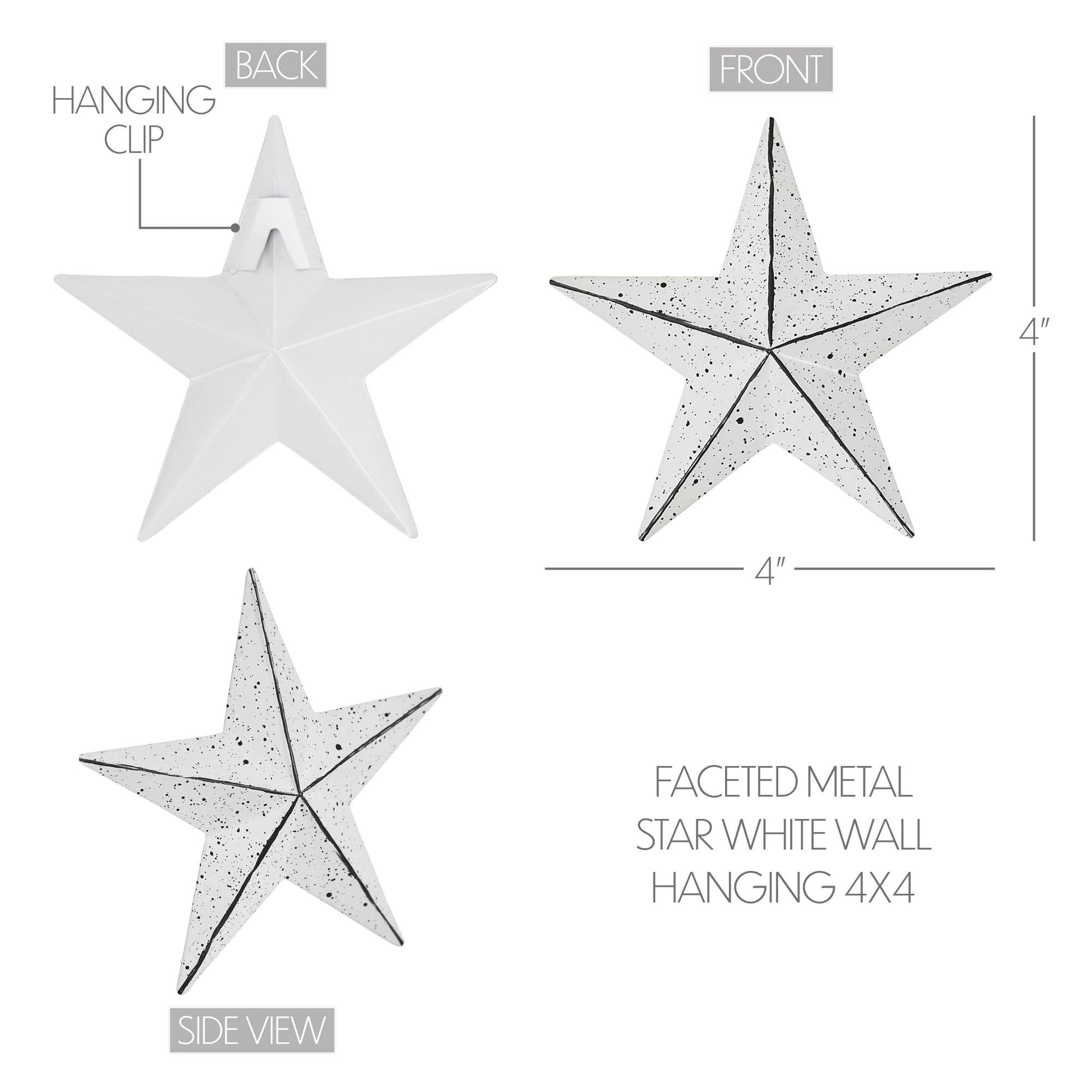 Our Patriotic Faceted Metal Star Wall Hanging, is a delightful 4x4 decor piece designed to infuse your space with Independence Day charm. Crafted from durable metal, this wall hanging features a quaint star shape and a matte white finish, effortlessly adding a touch of country elegance. The American star design, paired with a distressed appearance, creates a rustic and timeless aesthetic, making it an ideal accent for the bathroom, bedroom, dining room, entryway, kitchen, or living room. The matte white finish adds a primitive and stylish touch to this compact metal wall hanging, seamlessly blending with various interior styles.