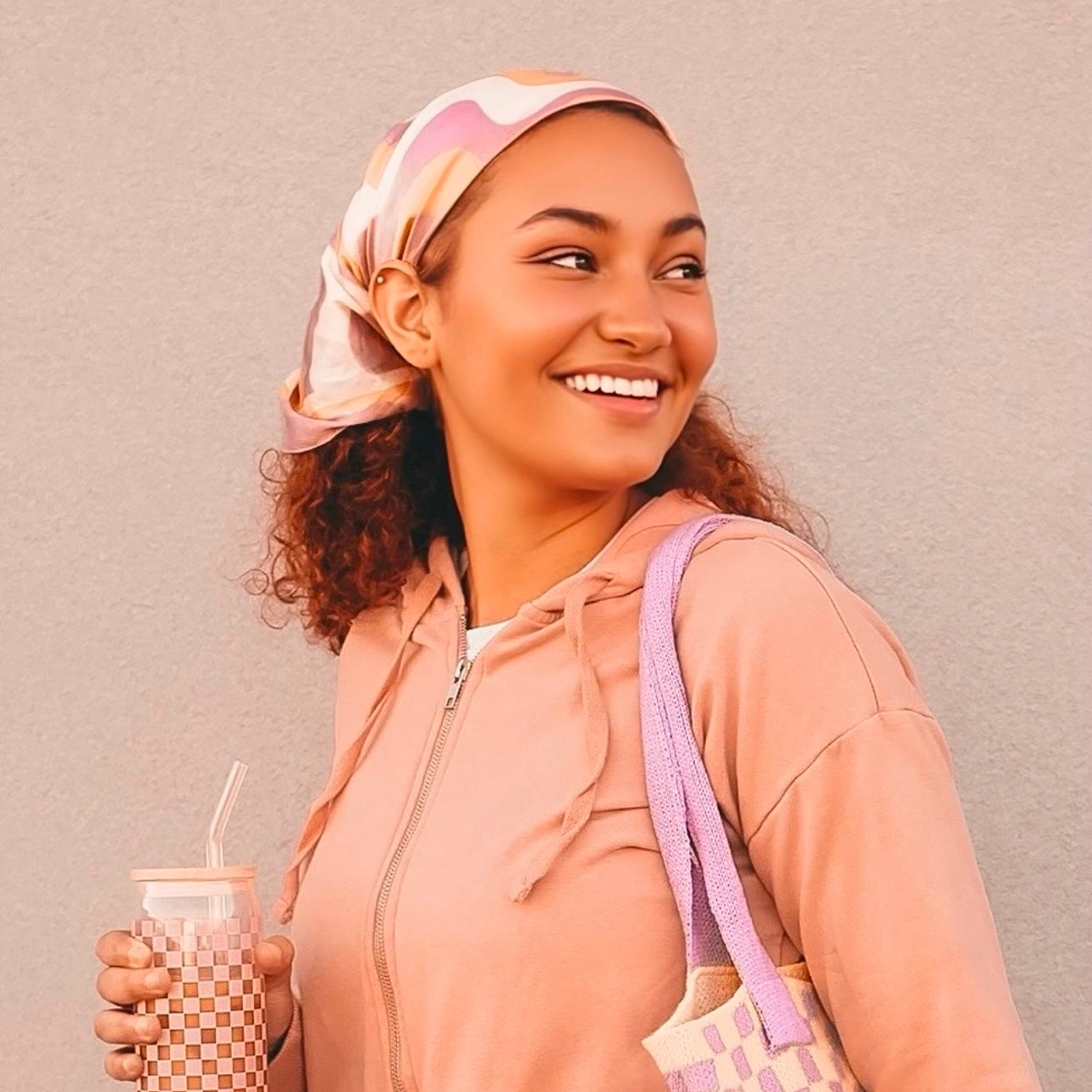 Pink Checkered Glass Tumbler w/ Bamboo Lid