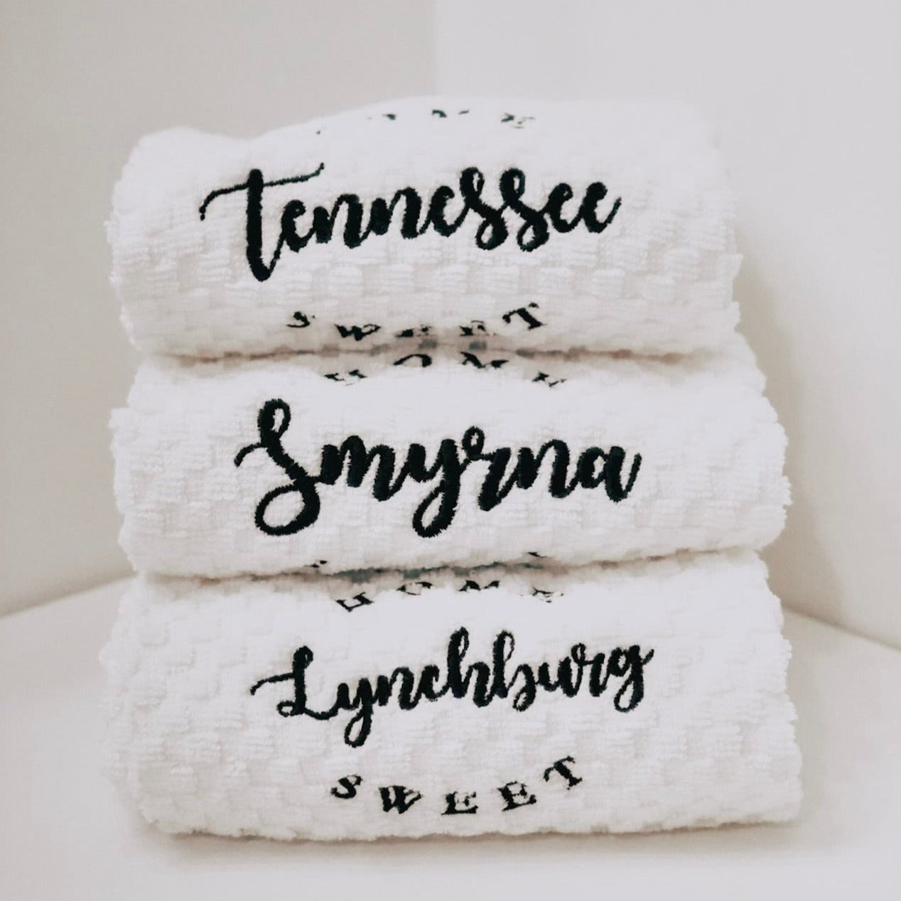 Home sweet home- and what makes it more sweet than a kitchen towel to show off your city pride! Made from soft, absorbent white cotton with black embroidered “Home Sweet Home” lettering, it’s a stylish nod to city love. Perfect for gifting or adding a local touch to your kitchen. The classic white waffle texture and classic black design goes with any style of home decor!